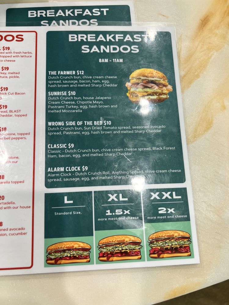 Dutch Crunch Bun, House made Jalapeo Cream Cheese, Chipotle Mayo, Pastrami Turkey, Hash Brown, Egg and melted Mozzarella