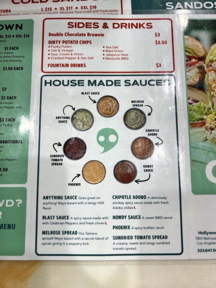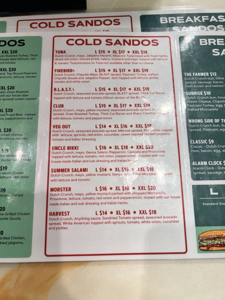 Toasted Dutch Crunch Roll smeared with our House Anything Sauce, SundriedTomato Sauce and Seasoned Avocado packed with White American Cheese, sprouts, tomato, white onion, cucumber and pickles
